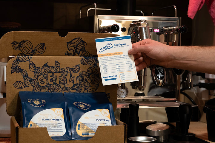 The PT's Espresso Box contains 10oz each of our two classic espresso blends along with a parameters card to guide your extraction. It's perfect for home baristas trying out PT's for the first time or anyone firing up a new home espresso machine!